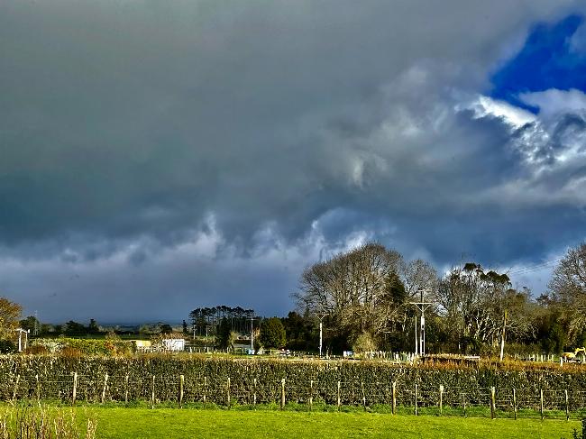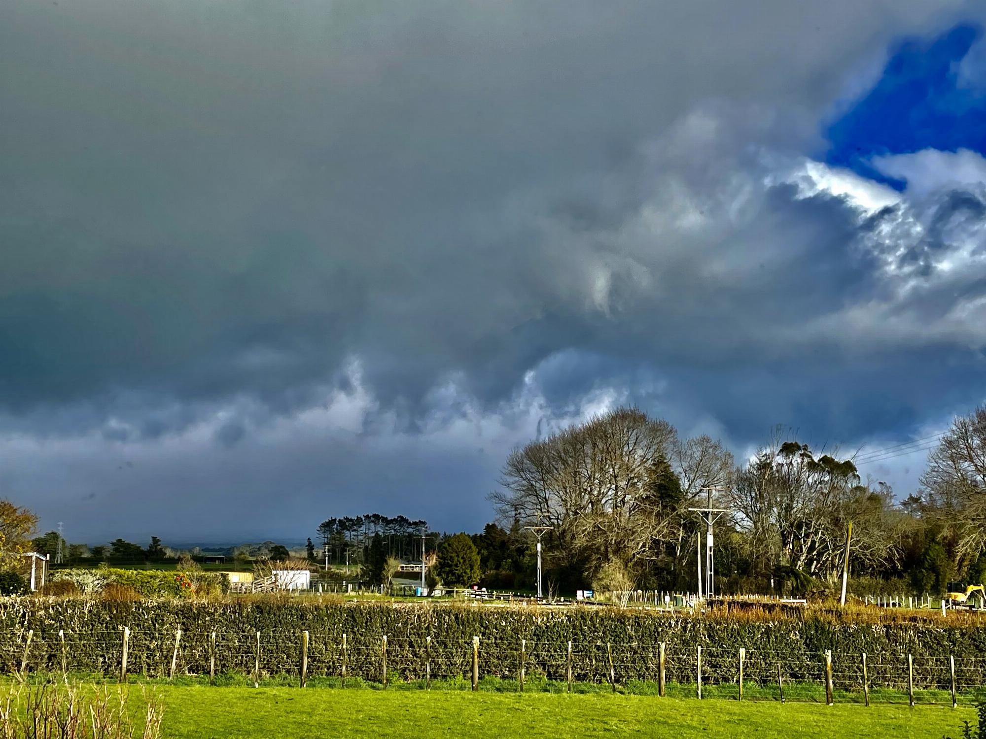 Moody looking sky at 8am 15/9/23 from my lounge windows, behind the cloud is Mt Taranaki. The pinch of blue sky is now gone and the clouds are looking menacing. Love moody skies and dark clouds - Stratford, Taranaki, NZ